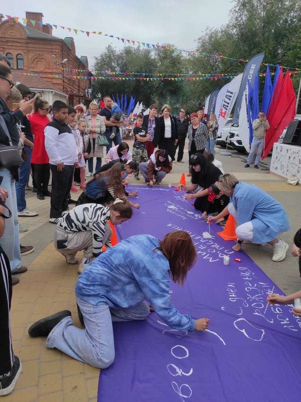 Многолюдно было и в зоне творческого конкурса - на лучшее поздравление Дубовке в день рождения. В нем приняли участие и взрослые, и дети., и жители Дубовки, и гости. Состязание было жарким, а поздравления на полотне на асфальте теплые и желанные. Победители всех конкурсов получили памятные сувениры.