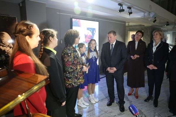 Одними из первых с ней ознакомились губернатор Волгоградской области Андрей Бочаров вместе с юными музыкантами — победителями регионального конкурса имени Пахмутовой.