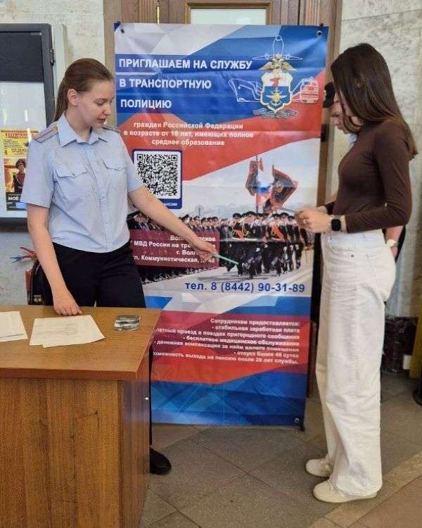 Каждый желающий связать свою жизнь со службой в МВД России, обратившись к наряду полиции рядом с рекрутинговым пунктом, смог получить информацию о службе и существующих вакансиях. Также можно было самостоятельно отсканировать QR-код и ознакомиться с существующими вакансиями волгоградской транспортной полиции. В ходе мероприятия сотрудники полиции раздавали буклеты с подробной информацией о трудоустройстве в органы внутренних дел на транспорте,- рассказала Все для Вас специалист по связям со СМИ Волгоградского ЛУ МВД России на транспорте Надежда Литвинова.
