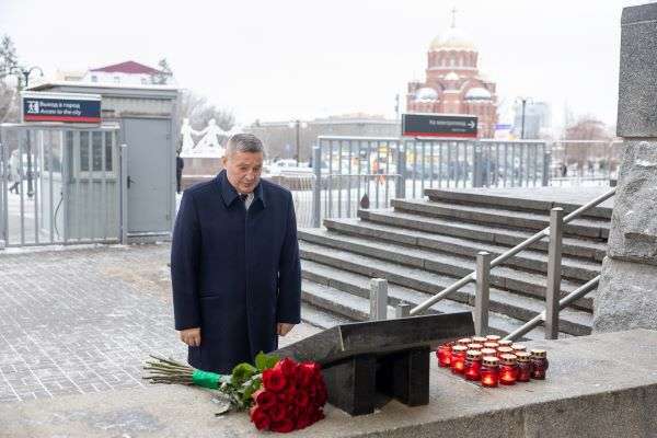 Глава региона также почтил память жертв взрыва в троллейбусе № 15 минутой молчания.