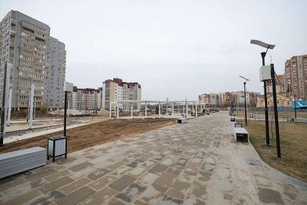 В текущем году работы на территории парка продолжаются. В порядок приводится участок между уже обновленным пространством, парковкой, прилегающей к жилым домам, и прудом. На сегодняшний день идет обустройство дорожно-тропиночной сети и укладка брусчатки, установка бордюрного камня. Продолжается монтаж систем освещения, видеонаблюдения, звукового оповещения. Полностью завершены подземные работы по прокладке сетей, начинается устройство световых комплексов, малых архитектурных форм. Появятся новые игровые площадки, различные качели, в том числе огромные перголы с подвесами, качели для маломобильных посетителей, а также качели-балансиры, которые будут светиться в темноте. В темное время суток будет подсвечена входная арка в парк. Предстоит озеленить эту территорию: здесь высадят клены и липы, кустарники — работы по созданию системы автоматического полива уже идут.